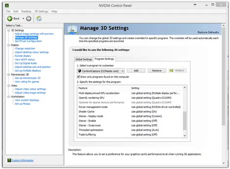 Une application de modélisation photogrammétrique telle que ContextCapture vous permet d’utiliser la carte graphique pour effectuer des calculs parallélisés afin d’obtenir un résultat le plus rapidement possible. Réglage correct des paramètres de la carte graphique est donc nécessaire, même si les propositions originales en général sont corrects.