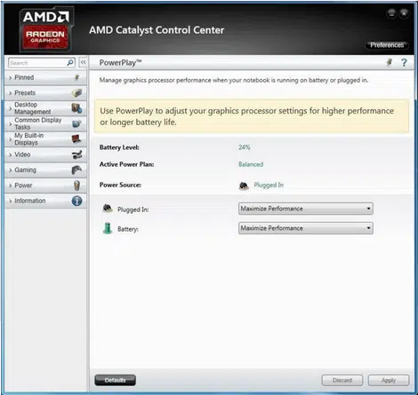 Pour les cartes ATI/AMD Radeon, accédez à Graphiques > PowerPlay – Définir les performances connectées et de la batterie.