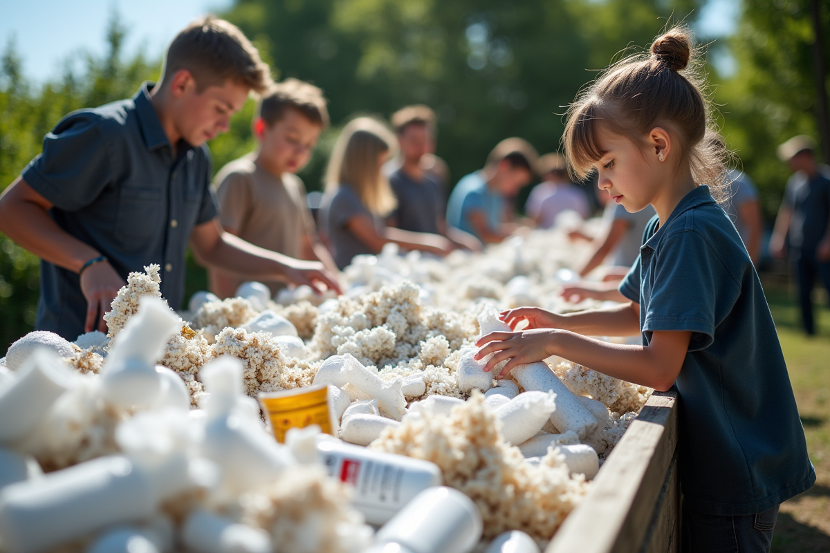 Des initiatives communautaires voient aussi le jour, souvent impulsées par des groupes de citoyens engagés dans une démarche zéro déchet. Ces initiatives incluent la création de réseaux de collecte locaux et la promotion de solutions de réutilisation du polystyrène dans des projets artistiques ou de construction. Ces actions permettent non seulement de réduire la quantité de polystyrène envoyée en décharge, mais aussi de créer une dynamique de solidarité au sein des communautés.