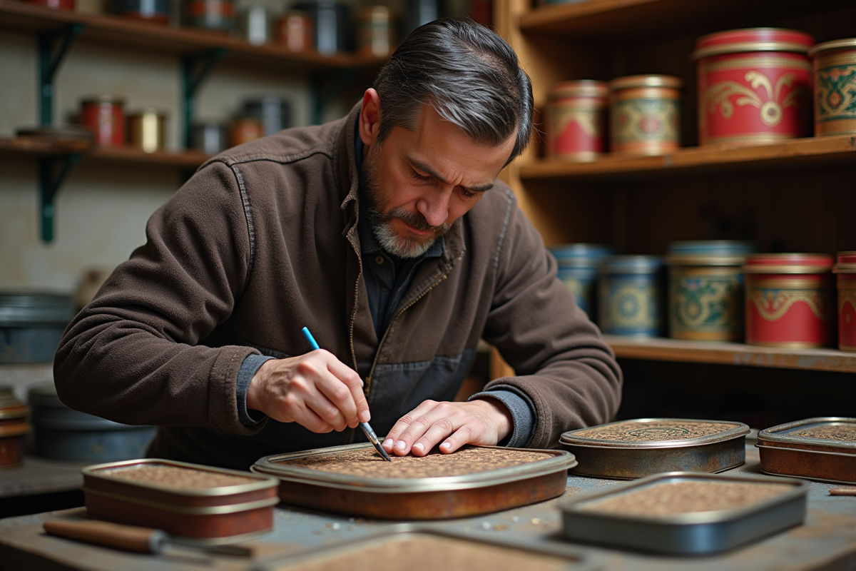 Une fois assemblées, les boîtes passent par l’étape de la décoration. Les artisans peignent à la main ou gravent des motifs inspirés par le folklore alsacien, ajoutant une touche unique à chaque pièce. Ces ornements sont souvent des scènes de vie, des fleurs ou des figures géométriques. La dernière étape consiste en l’application d’une couche de vernis protecteur, assurant la longévité et l’éclat des boîtes. Ce vernis protège aussi les motifs peints ou gravés contre l’usure du temps. Le respect de ces techniques traditionnelles confère aux boîtes en fer artisanales alsaciennes leur caractère exceptionnel, en faisant des objets à la fois utilitaires et artistiques.